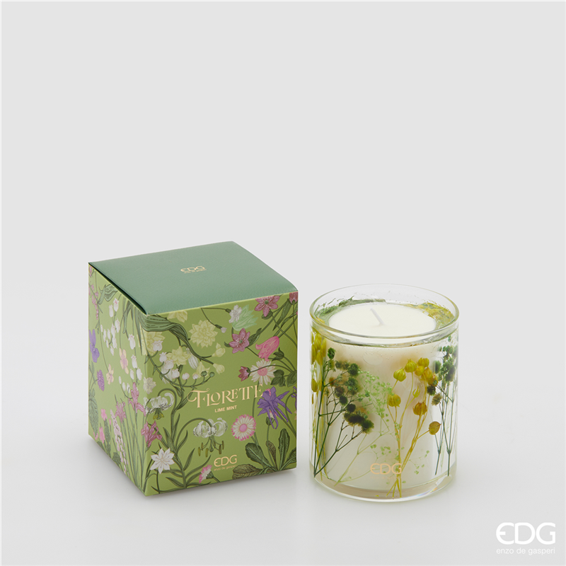 La candela Florette con profumo Lime Mint di Edg - Enzo De Gasperi, alta 9 cm, emana una fresca fragranza di lime e menta, perfetta per creare un'atmosfera rilassante e vivace in qualsiasi ambiente. Il suo design elegante si adatta a vari stili di arredamento, aggiungendo un tocco di raffinatezza.