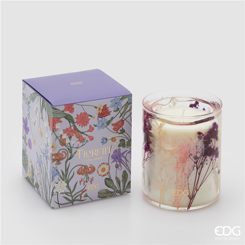 La Candela Florette con Profumo H12cm Lotus Jasmine di Edg - Enzo De Gasperi è un'elegante candela profumata caratterizzata da una fragranza di loto e gelsomino. Con un'altezza di 12 cm, è ideale per creare un'atmosfera rilassante e raffinata in qualsiasi ambiente.