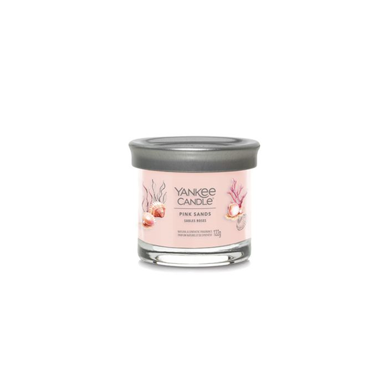 La Candela Tumbler Piccolo Pink Sands di Yankee Candle offre un profumo esotico e rilassante che combina note di agrumi dolci, fiori e vaniglia. La candela è contenuta in un elegante tumbler di vetro con coperchio in metallo, ideale per creare un'atmosfera accogliente in qualsiasi ambiente.