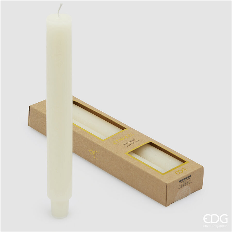 Candela a stelo in colore avorio, realizzata in materiale solido, con un'altezza di 25 cm. Confezione da 2 pezzi prodotta da Edg - Enzo De Gasperi, ideale per decorare ambienti con eleganza e raffinatezza.
