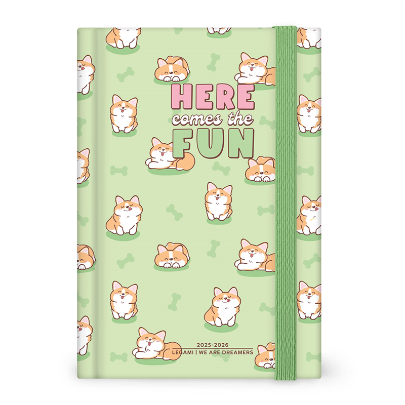 Agenda 16 Mesi Medium Photo Daily Diary Green Corgi 2025-2026 | Legami