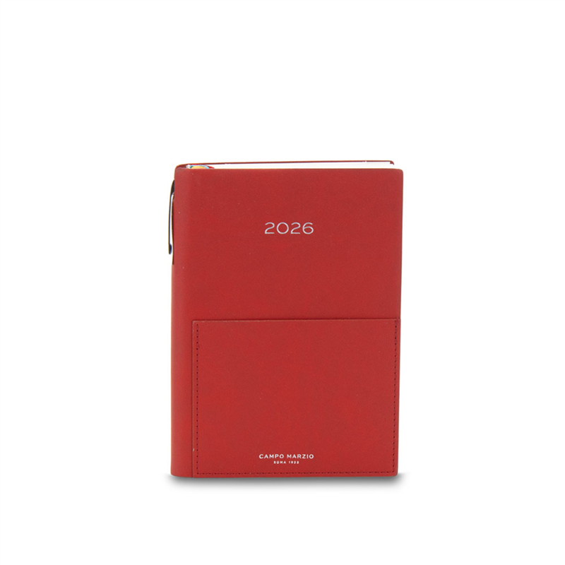 Agenda giornaliera 12x18 cm in colore Cherry Red di Campo Marzio, caratterizzata da una copertina elegante e resistente. Adatta per pianificare gli impegni quotidiani con stile e praticità.