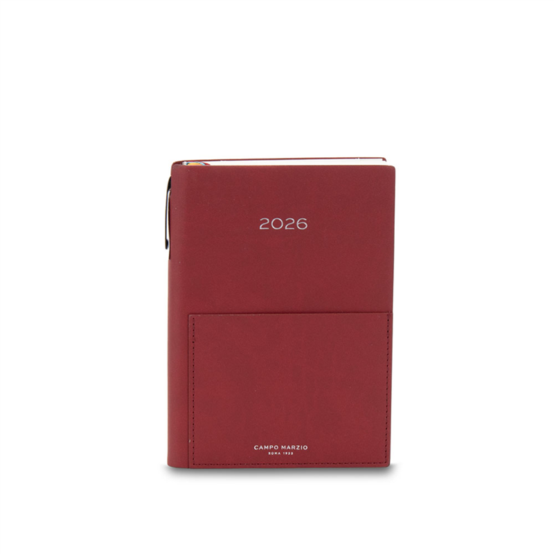 Agenda giornaliera 12x18 cm di Campo Marzio, colore Burgundy, perfetta per organizzare impegni e appuntamenti con eleganza. Copertina raffinata, formato compatto e pratico da portare sempre con sé.