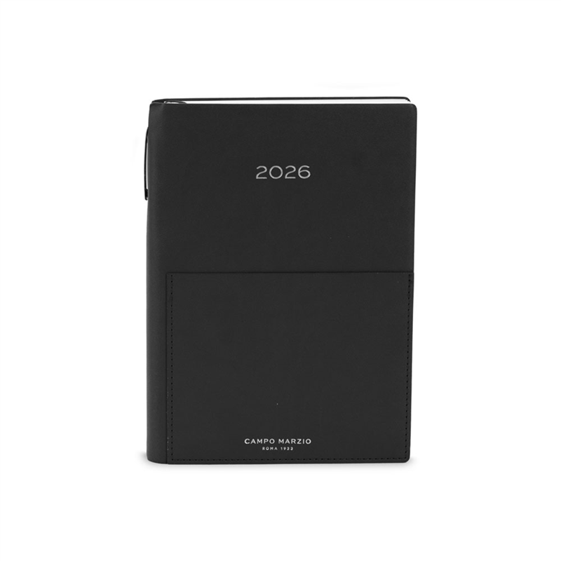 Agenda giornaliera 15x21 cm di Campo Marzio, colore nero, elegante e funzionale. Ideale per organizzare impegni quotidiani con stile. Copertina resistente, design classico, facile da trasportare. Perfetta per professionisti e studenti.