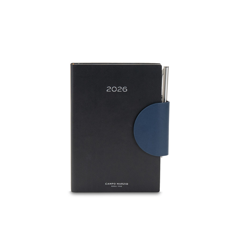 Agenda settimanale 12x18 cm, colore nero, del marchio Campo Marzio. Elegante e compatta, ideale per organizzare gli impegni quotidiani con stile. Copertina resistente, design raffinato, perfetta per professionisti e studenti.