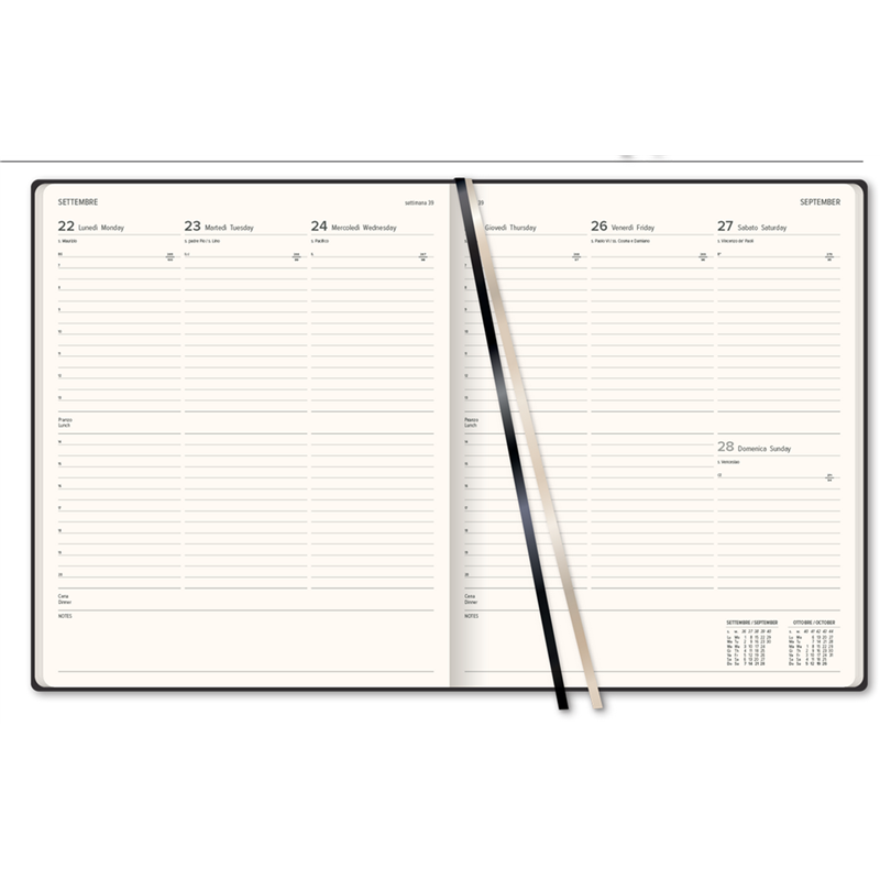 mod. 312 the business weekly diary 21 x 26, settimanale, 2 lingue: i-gb, carta natural 70 gr. fsc®, 240 pagine compresa rubrica, stampa ad un colore, 2 segnalibri in raso