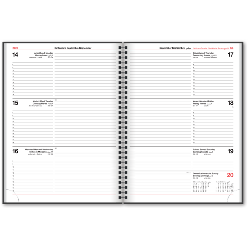 Agenda settimanale Copacabana di Cangini Filippi, dimensioni 19,1x26,5 cm, design elegante e funzionale, perfetta per organizzare gli impegni settimanali con stile.