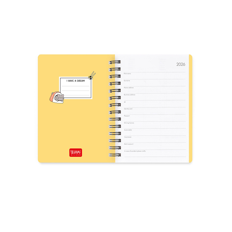 Agenda 12mesi Settimanale Spiralata Small Bo Sushi Cat 2026 | Legami