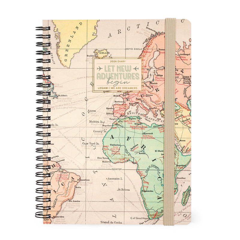 Agenda settimanale 12 mesi con rilegatura a spirale, formato large, ideale per organizzare i tuoi viaggi nel 2026. Copertina robusta e design elegante, offre ampio spazio per note e pianificazione dettagliata. Perfetta per chi ama viaggiare e pianificare con stile.