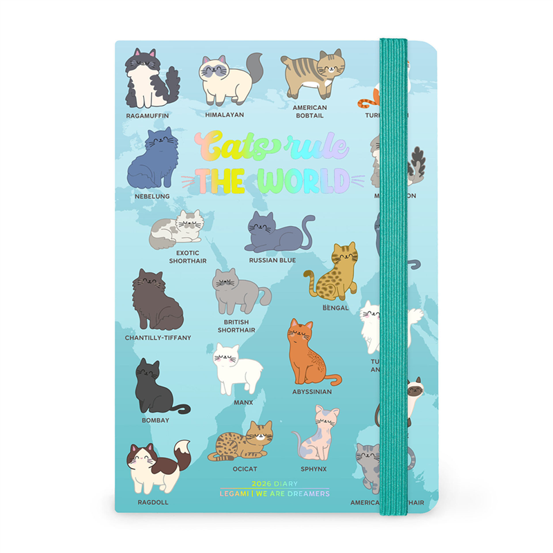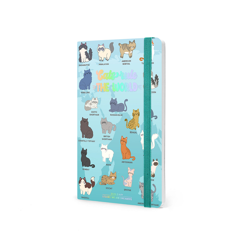 Agenda settimanale 12 mesi Legami 2026, formato medium, con copertina fotografica a tema Kitty. Funzionale e pratica, offre una panoramica settimanale per organizzare appuntamenti e impegni. Ogni settimana è distribuita su due pagine, con ampio spazio per note e attività. Design accattivante con illustrazioni di gatti, perfetta per gli amanti dei felini. Dotata di elastico di chiusura, segnalibro e tasca finale per documenti.