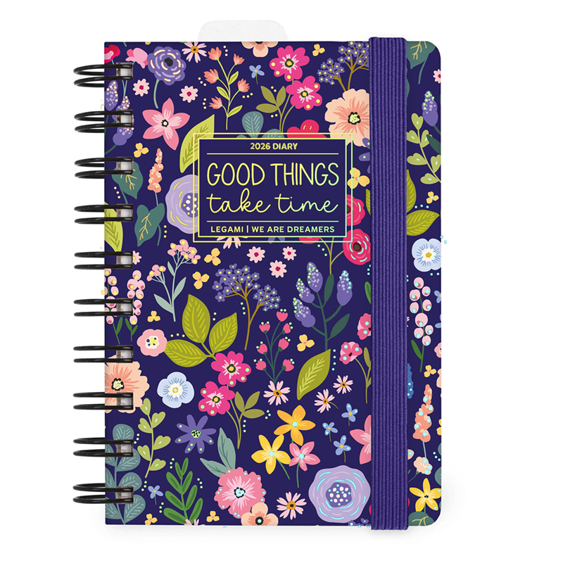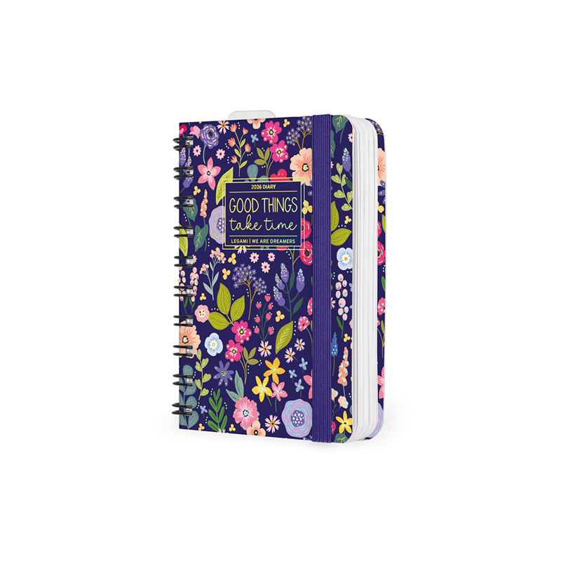 Agenda giornaliera spiralata Legami Dai Flowers 2026, formato Small, copertina con design floreale, durata 12 mesi.