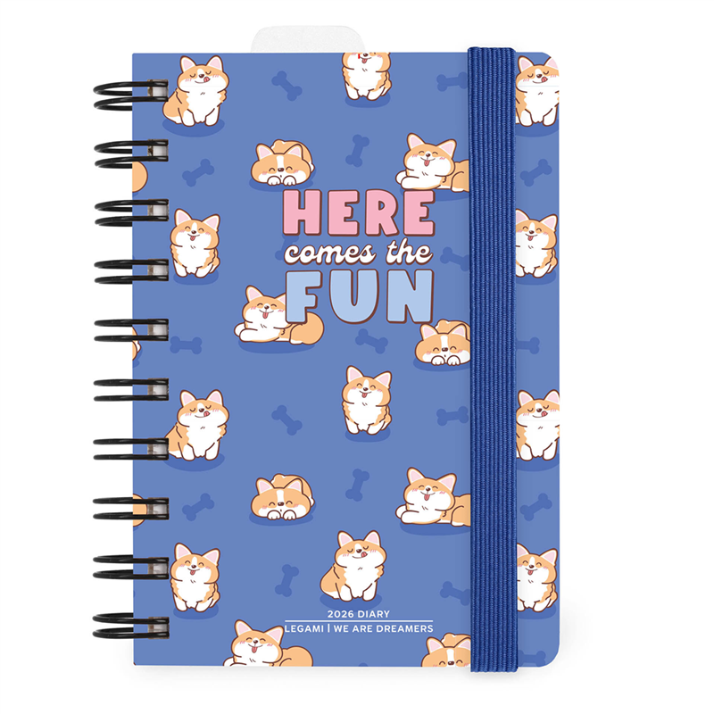 Agenda 12mesi Giornaliera Spiralata Small Dai Blue Corgi 2026 | Legami