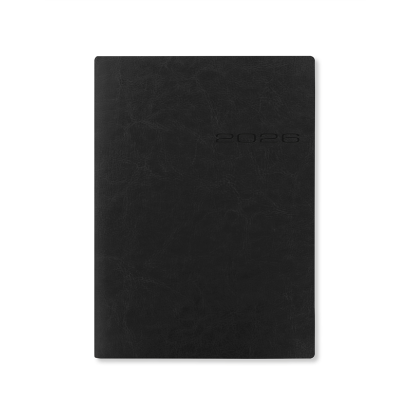 colore su richiesta (nero, verde, marrone, blu). copertina similpelle liscia, cucitura filo refe. copertina morbida flessibile. bordi pagina colorati. segnapagina.