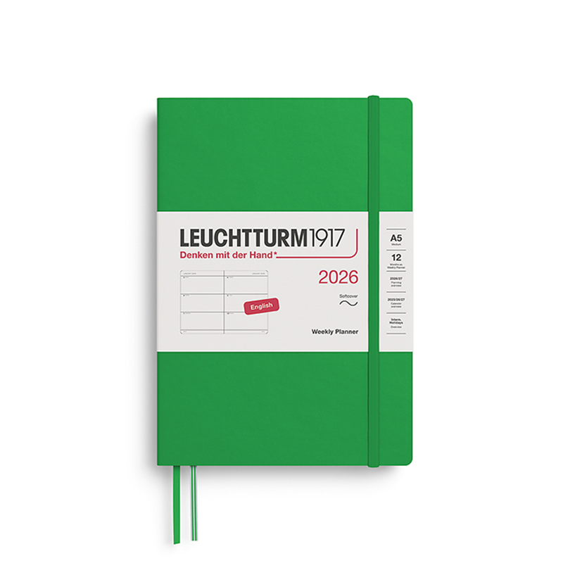 Agenda settimanale A5 12 mesi 2026 Leuchtturm1917 Spring Leaf in edizione Soft. Presenta un layout settimanale con spazio per note, copertina flessibile e design elegante, ideale per organizzare impegni e annotazioni quotidiane.