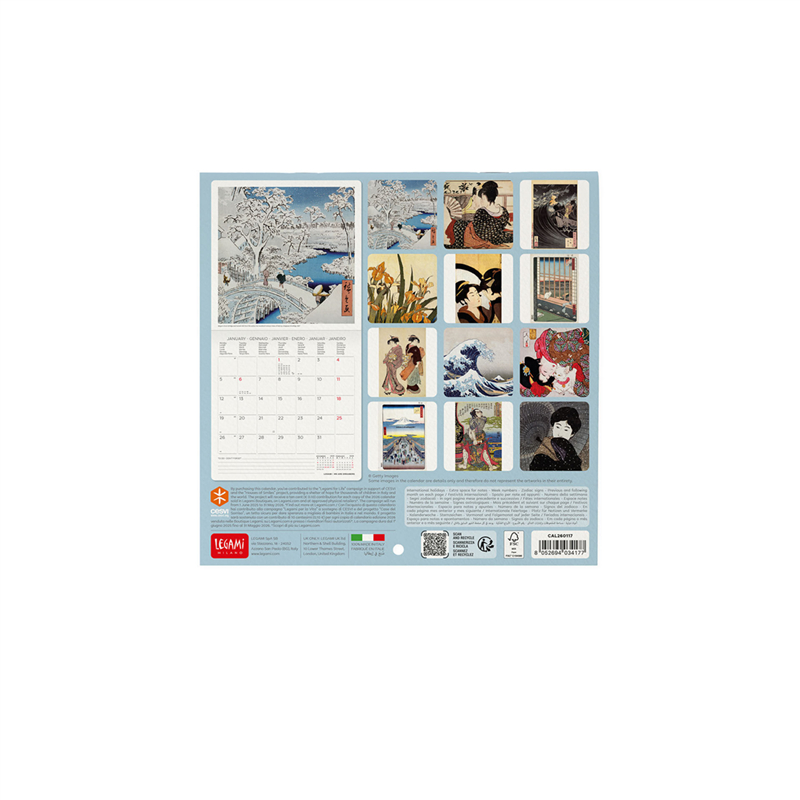 Calendario da Parete 18x18 cm, "Japanese School 2026" di Legami, con fotografie artistiche che celebrano l'eleganza e la cultura delle scuole giapponesi. Ogni mese presenta un'immagine evocativa e dettagliata, perfetta per arricchire qualsiasi ambiente con un tocco di raffinatezza e tradizione. Stampato su carta di alta qualità, offre ampio spazio per annotazioni giornaliere. Un elegante complemento d'arredo per chi ama l'estetica giapponese.