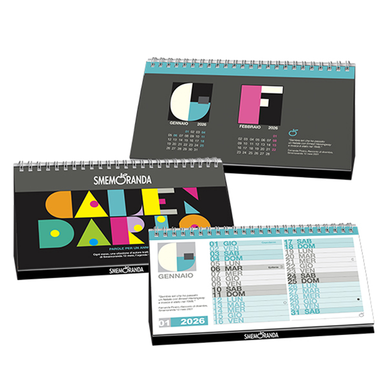 Calendario Da Tavolo 2026 | Smemoranda: Un pratico e colorato calendario da tavolo per il 2026, ideale per organizzare impegni quotidiani e appuntamenti. Ogni mese presenta grafiche vivaci e citazioni ispiratrici, tipiche dello stile Smemoranda, con ampio spazio per note personali. Realizzato con materiali di qualità, è perfetto per aggiungere un tocco di stile alla tua scrivania.