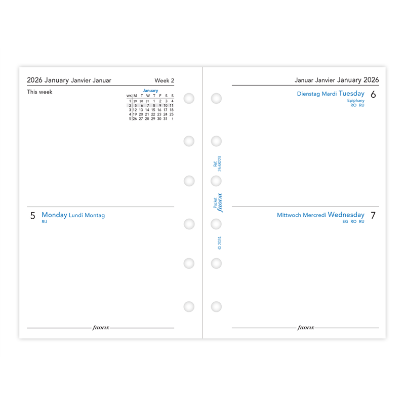 Diario 2 Giorni Per Pagina Pocket 3 Lingue Carta Bianca | Filofax