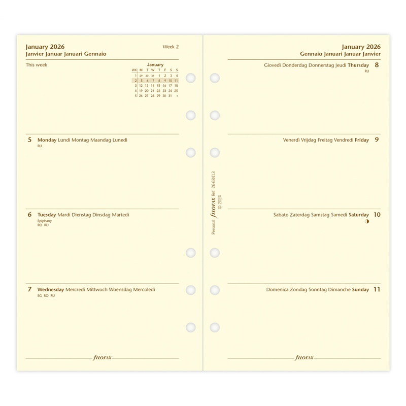 Diario Settimanale Personal 5 Lingue Carta Avorio | Filofax