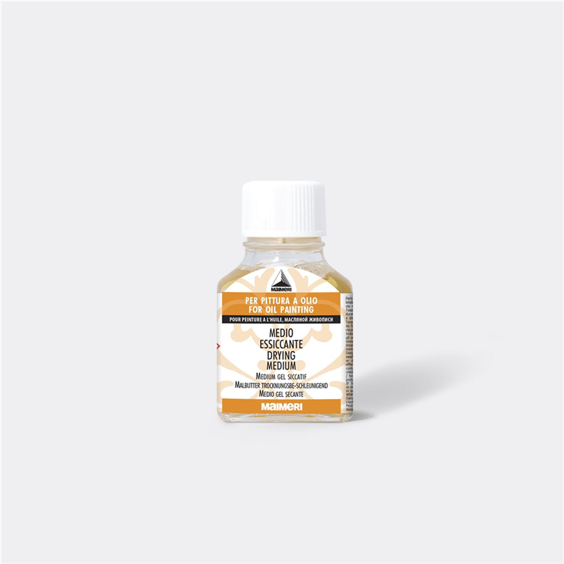 olio di lino essenza di petrolio ragia minerale essiccanti. medio che accelera l'essiccazione dei colori a olio, riducendone la consistenza. usare con parsimonia, controllando la riduzione dei tempi di essiccazione.