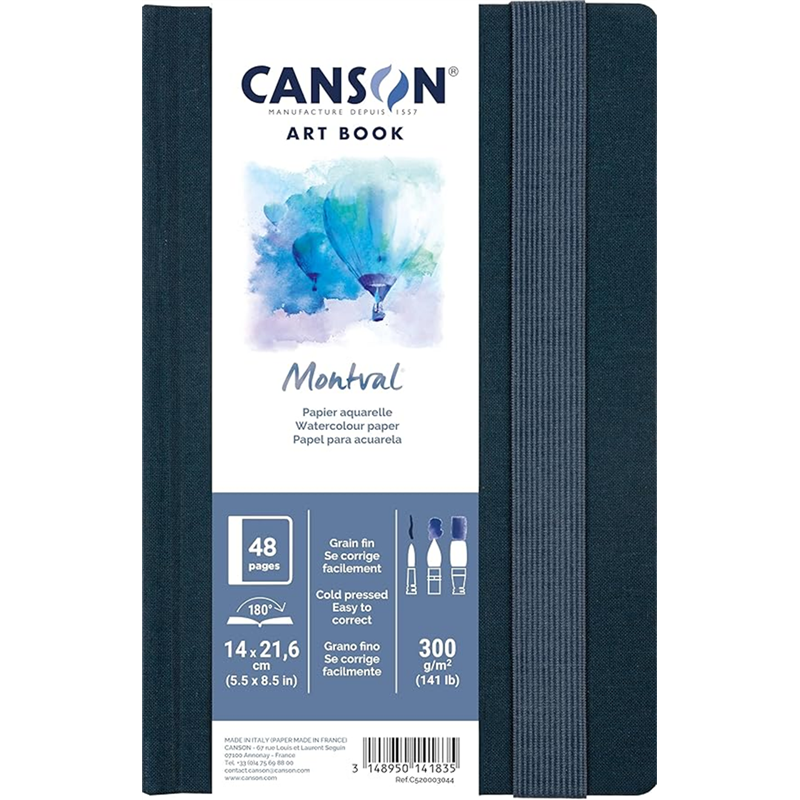 artbook 14x21.6 "montval" 300 gr. 28 fogli collato lato corto, di canson, è un elegante taccuino rilegato con copertina in tessuto con elastico. carta canson montval: 300g carta acquerello di pura cellulosa. facileda utilizzare, permette di eseguire correzioni senzadifficoltà.