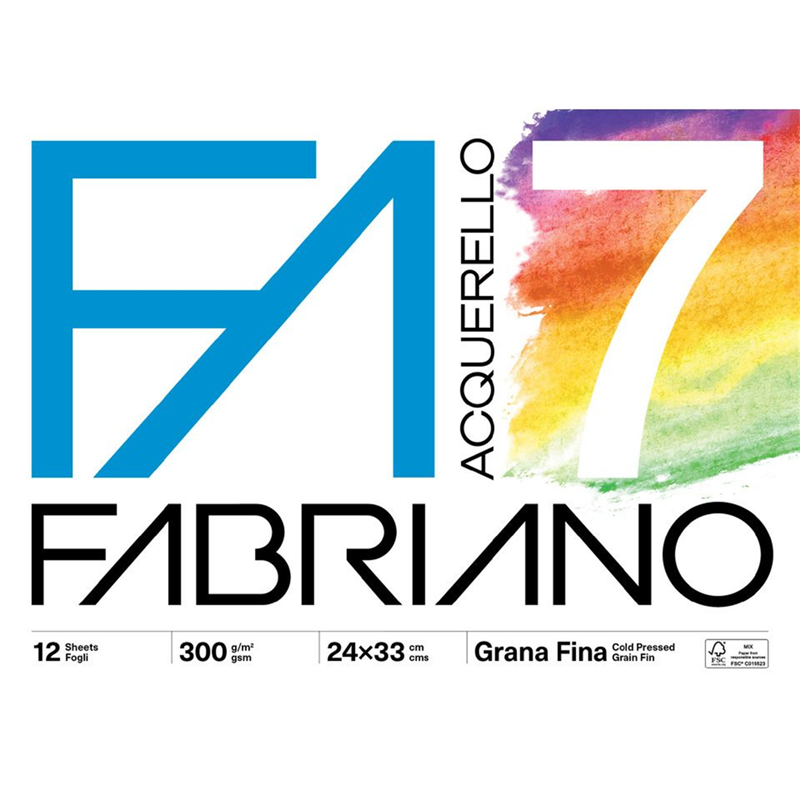 f7 - fabriano acquarello, una nuova carta da utilizzare sia a scuola che a casa per l'attività creativa. prodotta a macchina piana, senza cotone, certificata fsc® proveniente da foreste gestite secondo rigorosi standard ambientali, sociali ed economici. superficie a grana fine, collata per tecniche umide. confezione a 4 angoli, 12 fogli da 300 g/m².