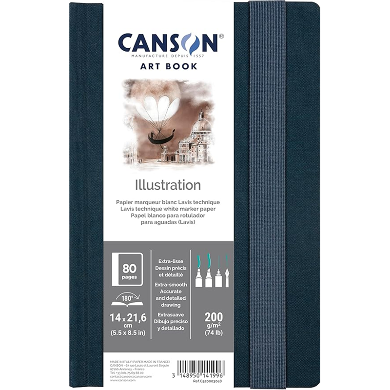 album rilegato copertina in tessuto con elastico. collato lato lungo, 200 gr, 40 fogli. carta canson illustration carta molto liscia e bianca è perfettaper marcatori pennarelli stilografica e matita. lasuperficie favorisce tratti netti e precisi. ideale per lagrafica manuale.