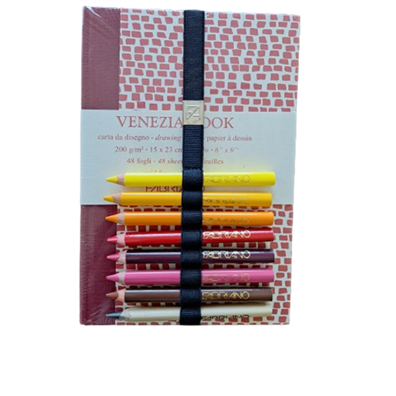 set regalo venezia book 23x30 + 8 matite fabriano, in elegante copertina coordinata.