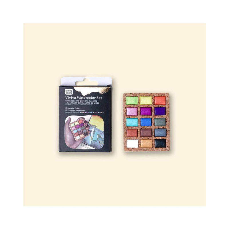 piccoli assortimenti di godet, disposti su una tavolozza di sughero naturale. leggeri, compatti e facili da trasportare, contengono colori vivaci e di lunga durata. un regalo creativo, pratico ed ecologico, ideale per tutti gli amanti degli acquerelli.
