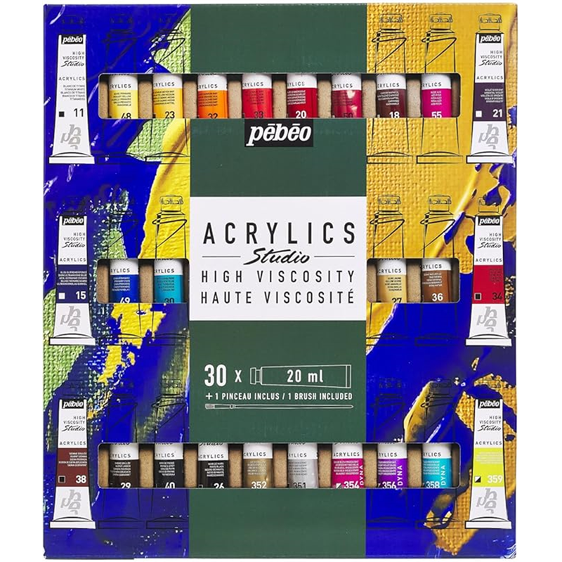 Scatola Acrylics Studio 30 Tubi 20 Ml Con Pennello | Pebeo