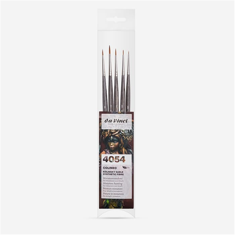 set di 5 pennelli in miniatura in martora sintetica kolinsky colineoelevata elasticità e assorbimento del coloremanici in legno laminato resistenti all'acqua