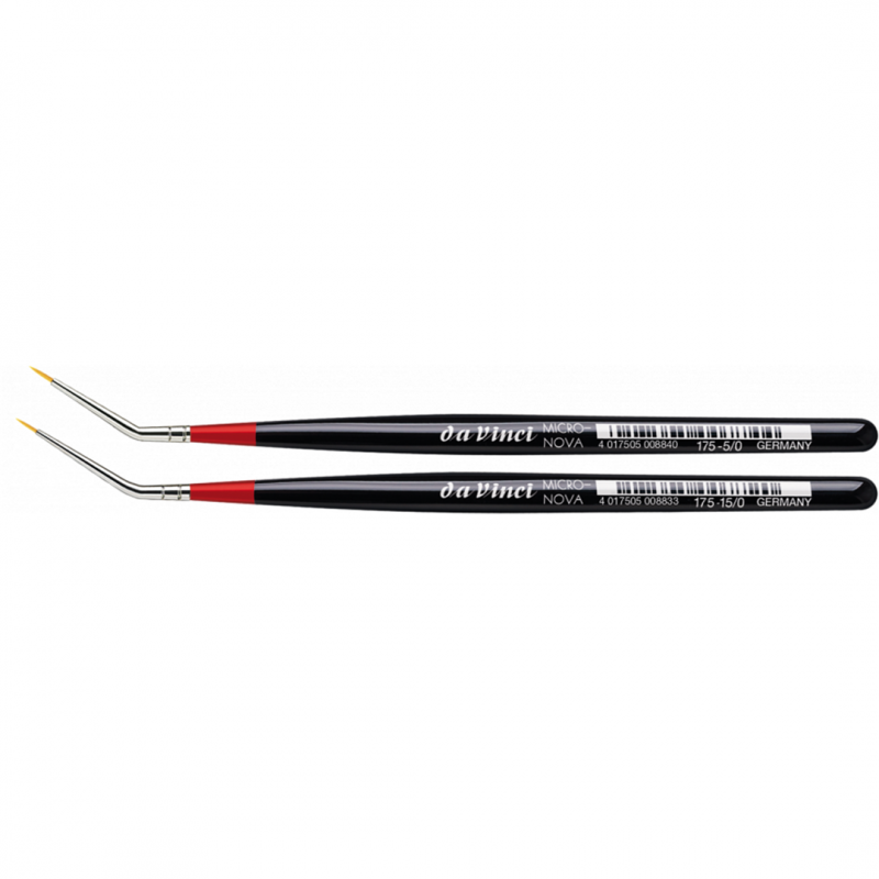 pennello in pelo sintetico extrafine dorato, ghiera argentata, manico corto esagonale per una buona presa, verniciato di nero con panciera di colore rosso. ideale per tutte le tecniche di pittura di miniatura, di table-top e micropittura. curvo per permettere una pittura anche negli angoli pi� nascosti.