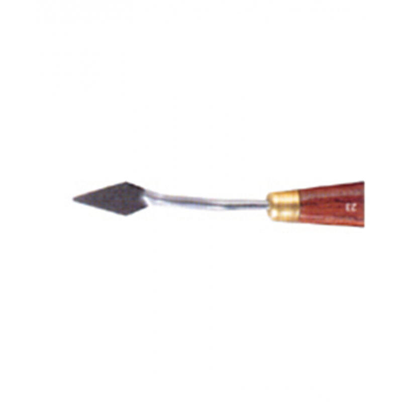la spatola per artisti n.23 di daler rowney è uno strumento versatile progettato per l'applicazione e la miscelazione di colori su tela. è realizzata in acciaio inossidabile di alta qualità, resistente alla corrosione, con un manico ergonomico in legno per una presa confortevole. la lama flessibile e affusolata consente una varietà di tecniche, inclusi dettagli precisi e ampie stesure di colore. è ideale per lavorare con oli, acrilici e altri mezzi pittorici.
