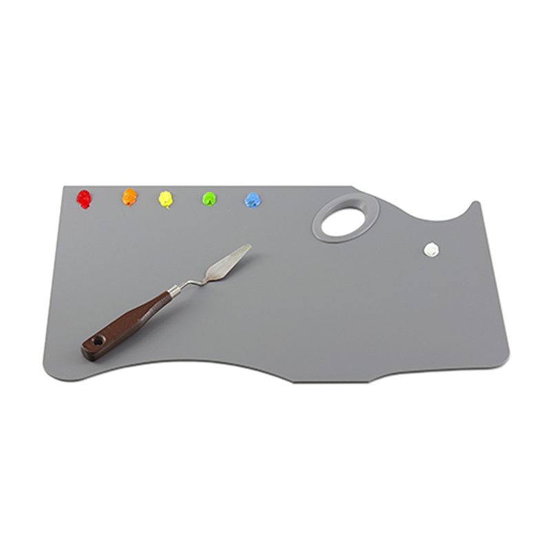 palette di plastica versatile per tutti i tipi di colore, gli acrilici si staccano facilmente, gli oli si tolgono con un qualsiasi solvente. guarnizione in silicone che permette un comodo appoggio per il pollice sia per i destri che per i mancini.
