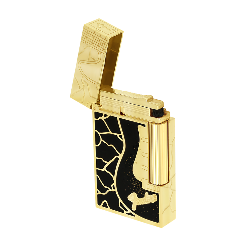 fender®, il più famoso marchio di chitarre, apre un negozio nel vivace quartiere di harajuku a tokyo. in questa occasione, e per la seconda volta, s.t. dupont e fender® collaborano, immaginando una linea rock ispirata al savoir-faire delle due case, tanto quanto al giappone. con il suo lavoro di lacca ispirato al kintsugi, ma anche il ritorno di un antico know-how con la polvere d'oro applicata a mano, questa collaborazione fa sua la creatività dell'universo musicale. accendino linea 2 cling dotato di una doppia fiamma giallo dolce. decorato con il motivo fender® con lacca blu, savoir-faire gold dust applicato a mano e finiture oro. dotato del famoso "cling" all'apertura. per ogni acquisto della linea 2, una collana médiator esclusiva è offerta. ricarica gas associata: rosso (ref 900435) accendino fornito vuoto di gas, ricarica venduta separatamente.