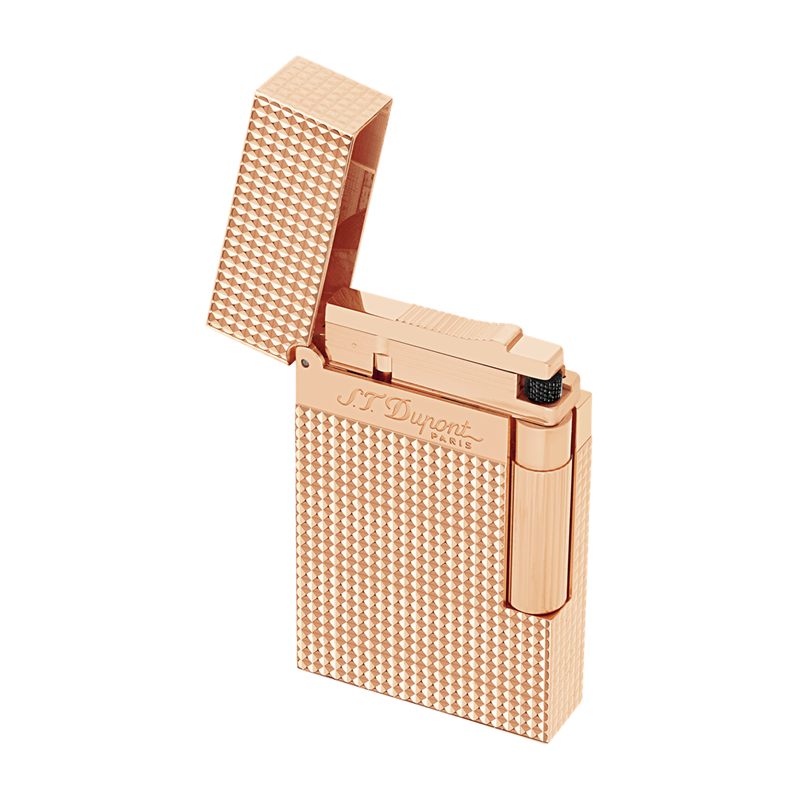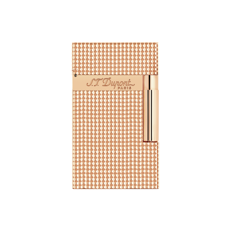 accendino a doppia fiamma giallo.decorato con il motivo iconico della casa: punta di diamante e placcato in oro rosa.dotato della famosa "cling" all'apertura.pietra da accendino associata: nera (ref 900601).ricarica di gas associata: gialla (ref 900432).accendino consegnato vuoto di gas, ricarica venduta separatamente.