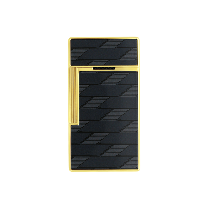 lavorazione del metallo, ma anche arte della lacca e della tela cerata per la pelletteria, le competenze di s.t. dupont si incontrano nella collezione monogram 1872. ben radicati nella loro epoca, i pezzi della collezione presentano tutti il nuovo logo s.t. dupont, dritto, deciso e fiero.accendino biggy decorato con il motivo monogram 1872 nero e finiture dorate. dotato di una fiamma torcia di 2 cm.accendino fornito vuoto di gas, ricarica venduta separatamente.