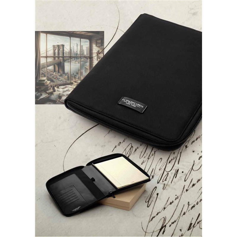 Porta Blocco Jack Nero di A.g. Spalding & Bros.: un elegante accessorio in pelle di alta qualità, progettato per contenere blocchi note e documenti essenziali. Presenta un design raffinato e funzionale, ideale per professionisti che apprezzano uno stile classico e sofisticato.