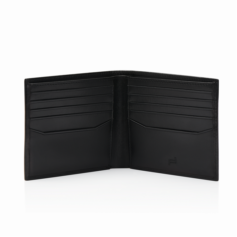 "l'elegante fusione di estetica e funzionalità: la collezione porsche design classic. la pregiata pelle liscia lucida in colore nero, i lati esterni perfettamente rifiniti e la caratteristica placca con logo porsche design in metallo conferiscono al portafoglio porsche design classic billfold 10 uno stile minimalista e senza tempo. la finitura interna di alta qualità è perfettamente all'altezza del design intelligente: questo portafoglio da uomo colpisce infatti per la suddivisione interna generosa e funzionale. con dieci slot per carte di credito, due scomparti per banconote e altri due più grandi, ad es. per i biglietti da visita, questo portafoglio offre spazio per tutte le carte e le ricevute importanti. dettagli: • portafoglio da uomo senza tempo in un formato classico• pelle di vitello liscia con placca in metallo con logo porsche design• dieci slot per carte di credito• due tasche grandi• due scomparti per banconote• protezione rfid"
