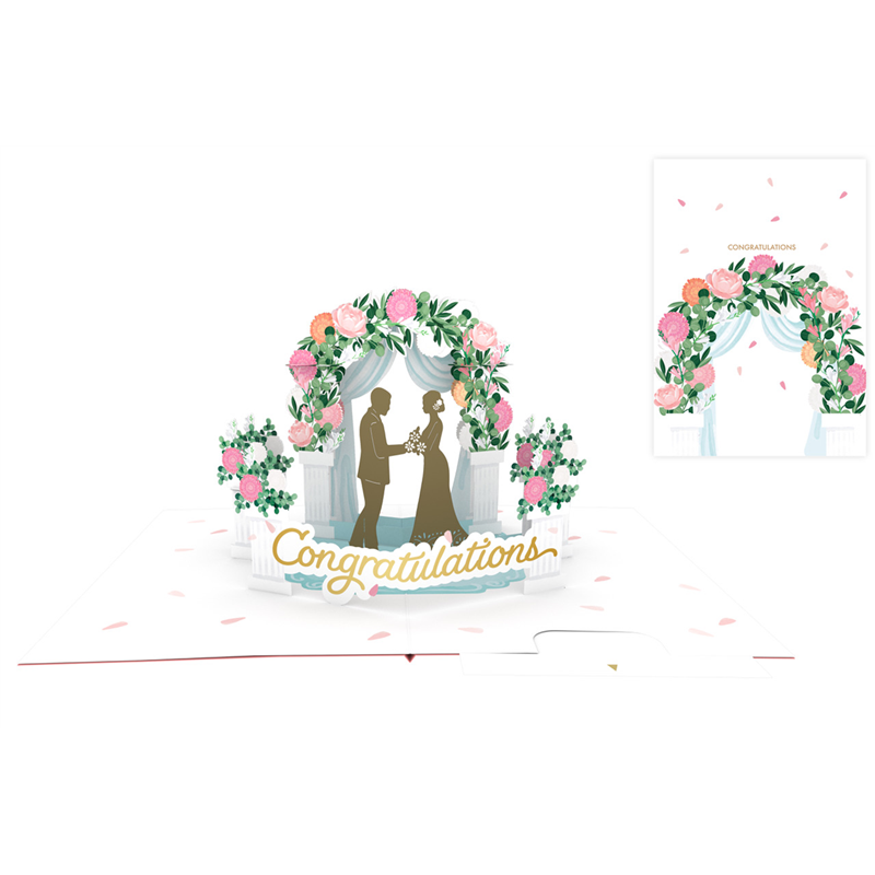 Biglietto di auguri kirigami fatto a mano, ideale per matrimoni, con un elegante design di fiori. Creato con precisione artistica da Origamo, questo biglietto è un'opera d'arte tridimensionale che si apre per rivelare un incantevole bouquet floreale, simbolo di amore e felicità. Perfetto per celebrare un giorno speciale con un tocco di originalità e raffinatezza.