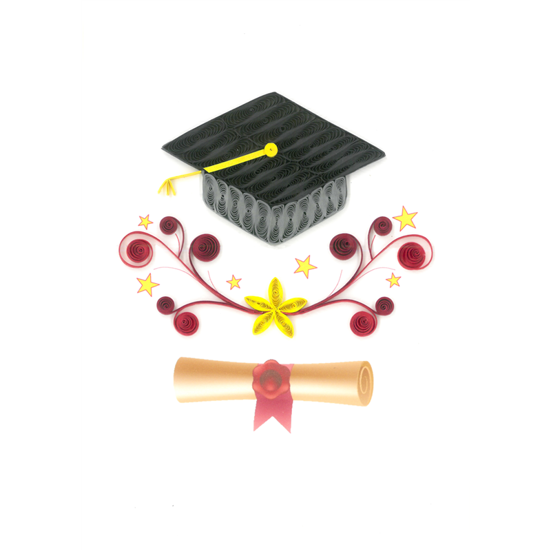 Biglietto d'auguri artigianale con un elegante cappello da laurea realizzato in quilling. Perfetto per celebrare il traguardo accademico con un tocco di originalit� e creativit�. L'arte dell'origami si fonde con la tecnica del quilling per un design unico e raffinato, ideale per esprimere congratulazioni speciali.