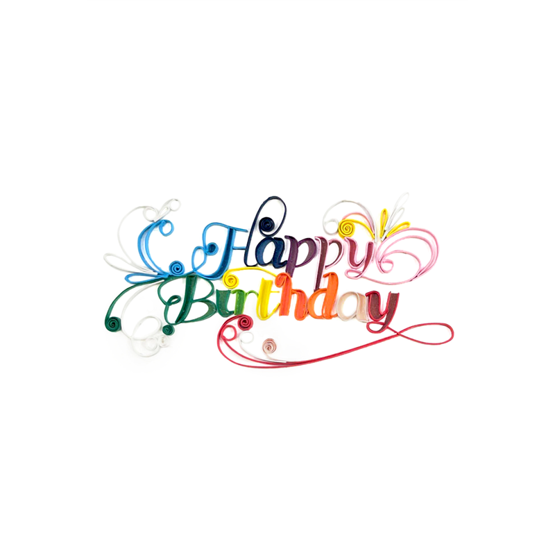 Biglietto di auguri artigianale realizzato con la tecnica del quilling, caratterizzato da intricati motivi di carta arrotolata che formano un elegante design floreale. La scritta "Happy Birthday" è sapientemente integrata nel motivo, rendendo questo biglietto un regalo unico e speciale per celebrare un compleanno in modo originale. Perfetto per chi ama l'arte e l'eleganza del fatto a mano.