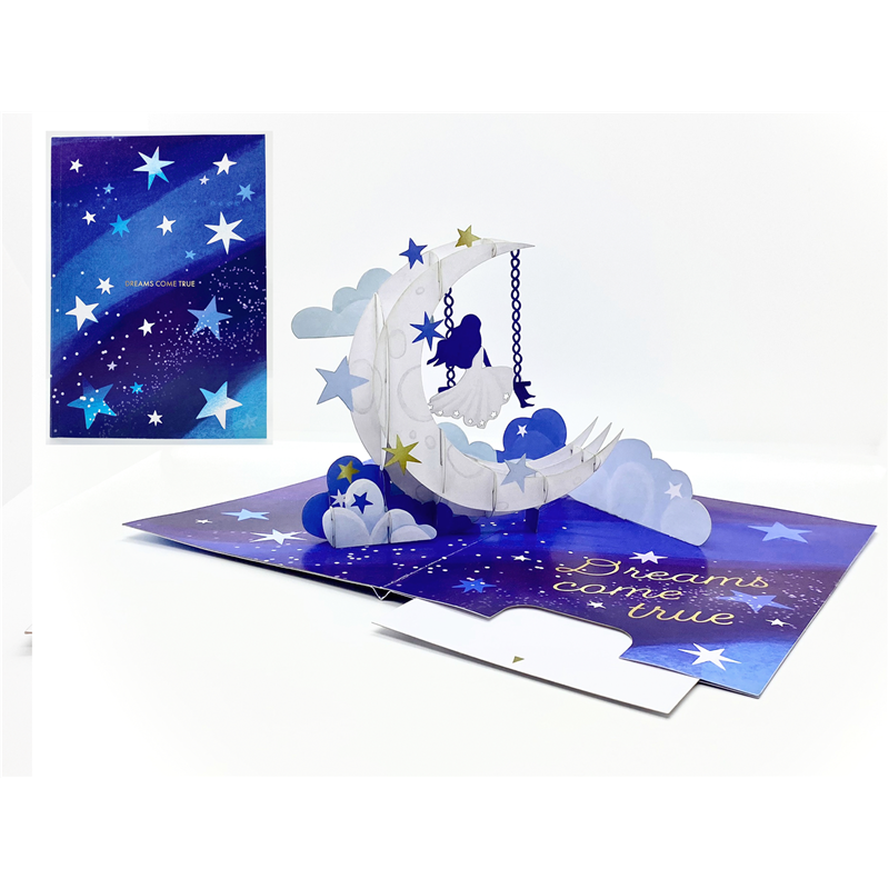 Biglietto di auguri kirigami fatto a mano, realizzato con precisione e creativit�. Al suo interno, un intricato design tridimensionale si apre per rivelare un mondo di sogni che diventano realt�. Perfetto per celebrare momenti speciali, questo biglietto � un'opera d'arte che esprime desideri e speranze in modo unico e sorprendente. Parte della collezione Origamo, combina l'eleganza del tradizionale artigianato giapponese con un tocco di modernit�, rendendolo un regalo indimenticabile.