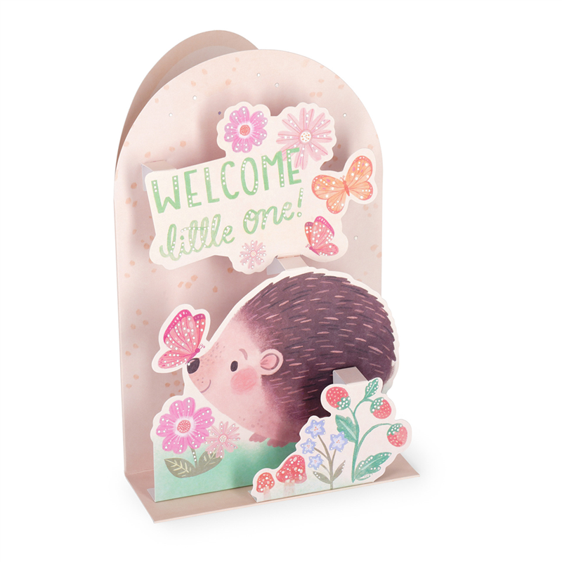 Biglietto pop up celebrativo per la nascita, decorato con motivi colorati e dettagli in rilievo, perfetto per accogliere il nuovo arrivato con un tocco di originalità e dolcezza.
