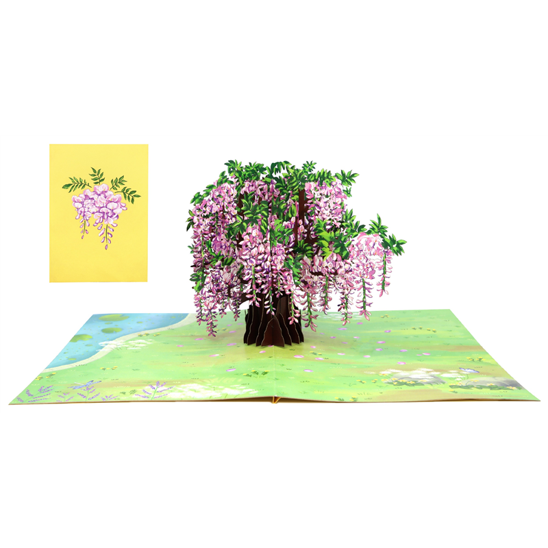 Biglietto di auguri kirigami fatto a mano, con un elegante design di glicine in rilievo. Realizzato con cura artigianale, questo biglietto di Origamo � perfetto per celebrare momenti speciali con un tocco artistico unico.