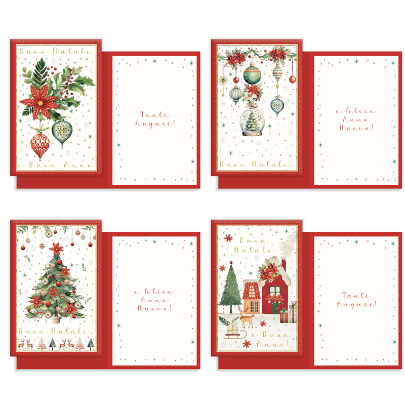 Biglietto natalizio elegante e raffinato di Kartos, caratterizzato da decorazioni e alberi di Natale intricati e dettagliati. Realizzato con materiali di alta qualità, presenta una stampa festosa che esprime lo spirito natalizio. Perfetto per accompagnare regali o per inviare auguri speciali durante le festività.
