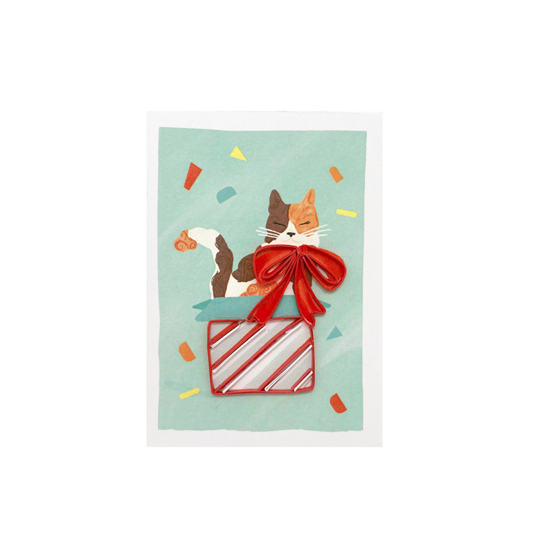 Biglietto Mini Auguri Kirigami Fatto A Mano Cat di Origamo: Un elegante biglietto d'auguri realizzato a mano utilizzando la tecnica del kirigami, raffigurante un adorabile gatto. Perfetto per esprimere i tuoi auguri in modo originale e artistico, questo biglietto si distingue per la sua qualit� artigianale e il design unico.