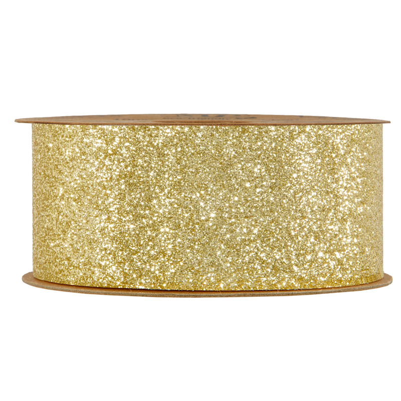 Nastro decorativo Desiree, colore oro, larghezza 40 mm, lunghezza 10 metri, ideale per confezioni regalo eleganti e addobbi sofisticati. Disponibile nella Selezione Vertecchi.