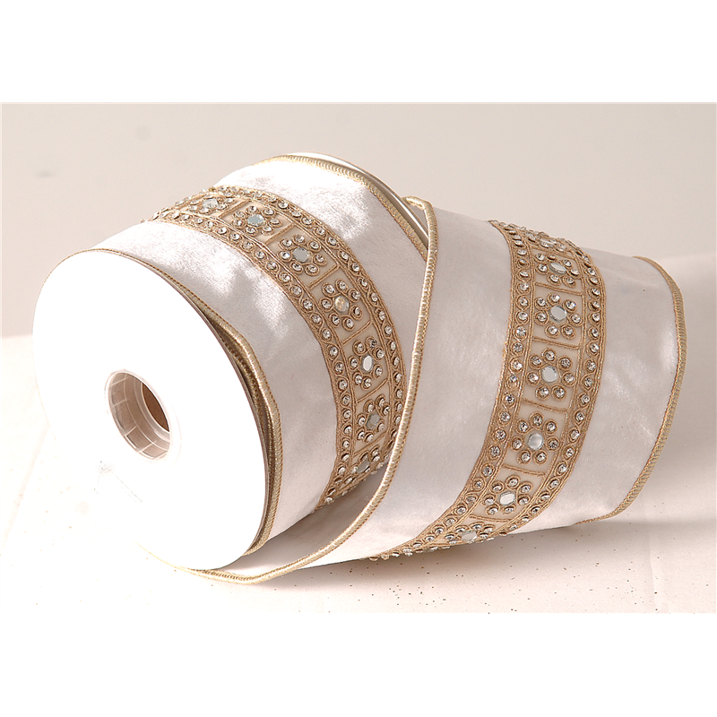 Nastro decorativo bianco e oro con dimensioni di 10 cm di larghezza e 4,6 metri di lunghezza. Perfetto per aggiungere un tocco elegante e festoso a confezioni regalo, decorazioni per eventi o progetti di artigianato.