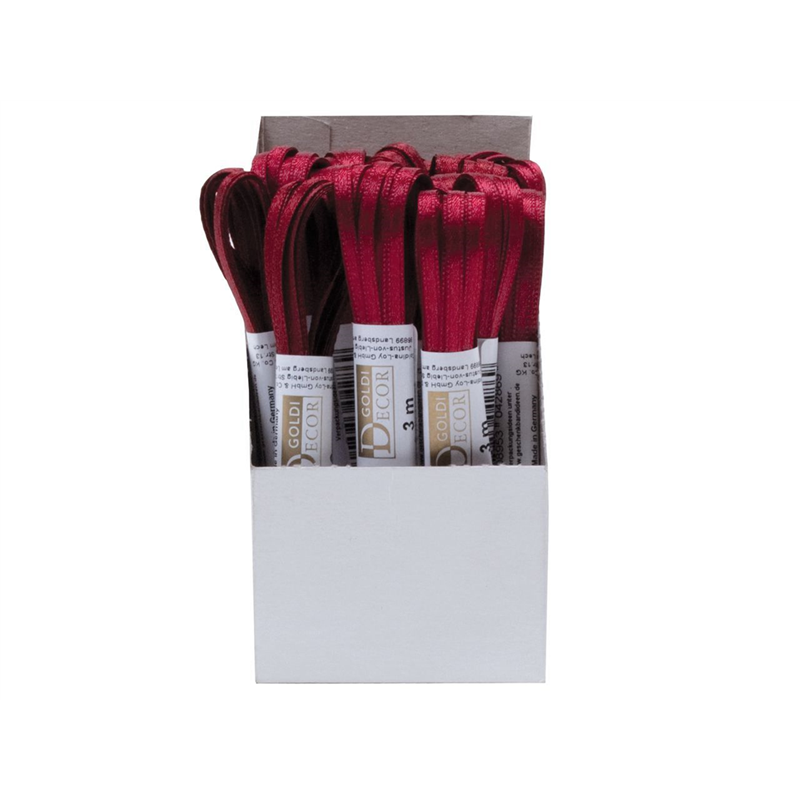 Nastro Doppio Raso 3mtx3mm 26-Bordeaux di Goldina è un elegante nastro in tessuto raso, lungo 3 metri e largo 3 millimetri, caratterizzato da una raffinata tonalità bordeaux. Perfetto per decorazioni, confezionamento di regali, lavori di artigianato e progetti creativi che richiedono un tocco di classe e colore.