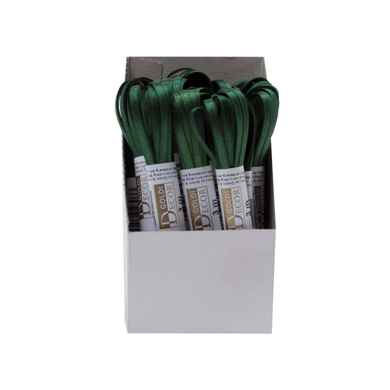 Nastro Doppio Raso 3mt x 3mm di colore Verde Scuro, codice 59, marca Goldina. Realizzato in materiale di alta qualità, ideale per decorazioni, confezionamenti e progetti di artigianato. Lunghezza totale di 3 metri con una larghezza di 3 millimetri.